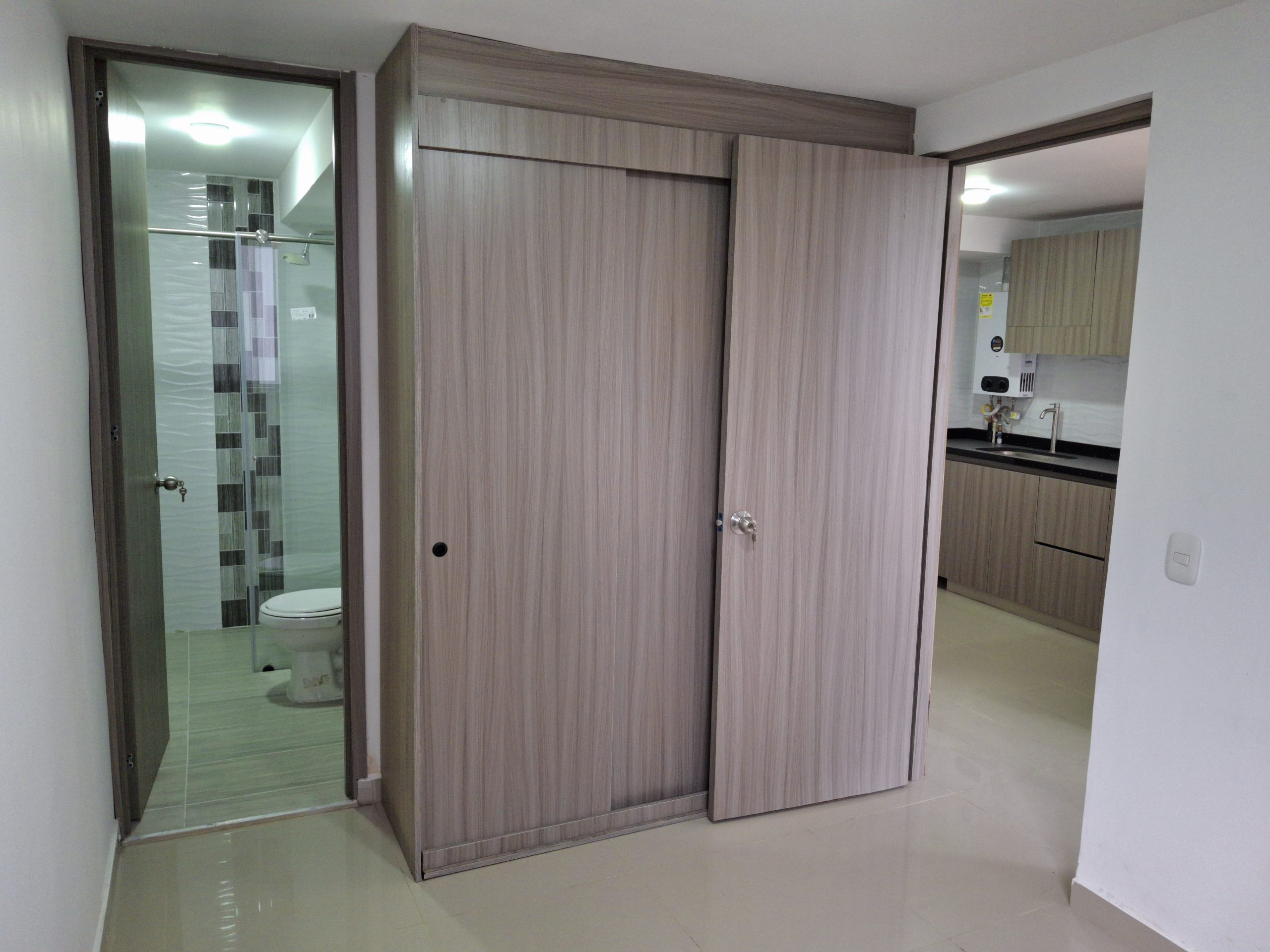 Hermoso apartaestudio, cercano a vías principales como la avenida Boyacá, cerca a centro comercial multiplaza, piso trece con ascensor, cuenta con una habitación con closet, un baño, cocina integral abierta y sala comedor.